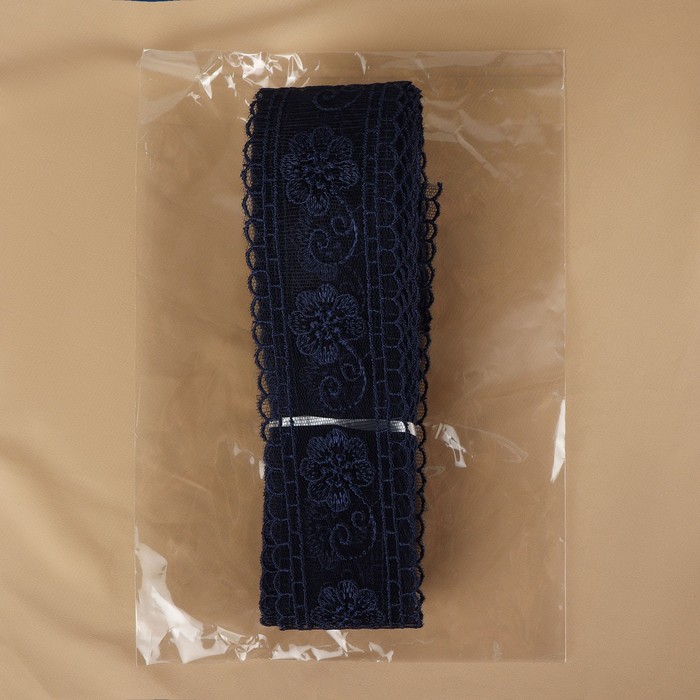 Кружево на сетке, 50 мм, 11±1 м, тёмно-синее