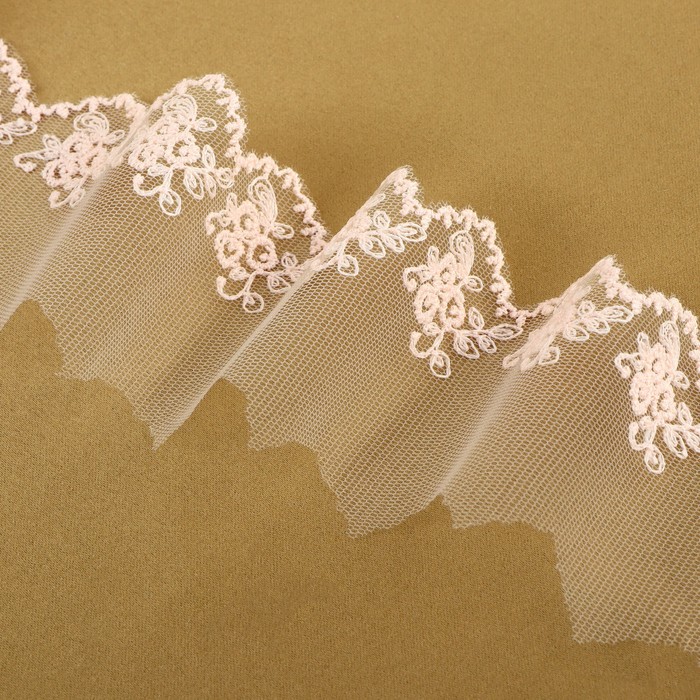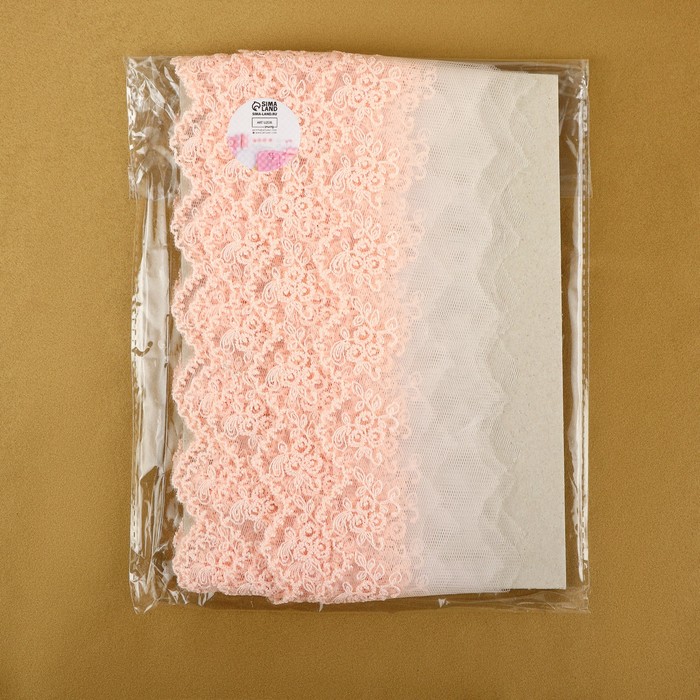 Кружево на сетке, 65 мм, 9±0.5 м, цвет розовый — Характеристики