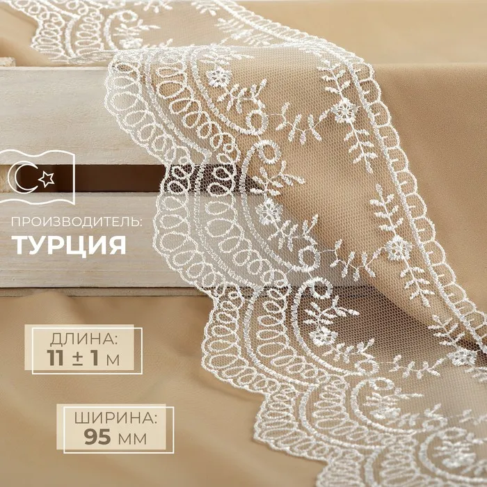 Кружево на сетке, 95 мм, 11±1 м, айвори — Характеристики