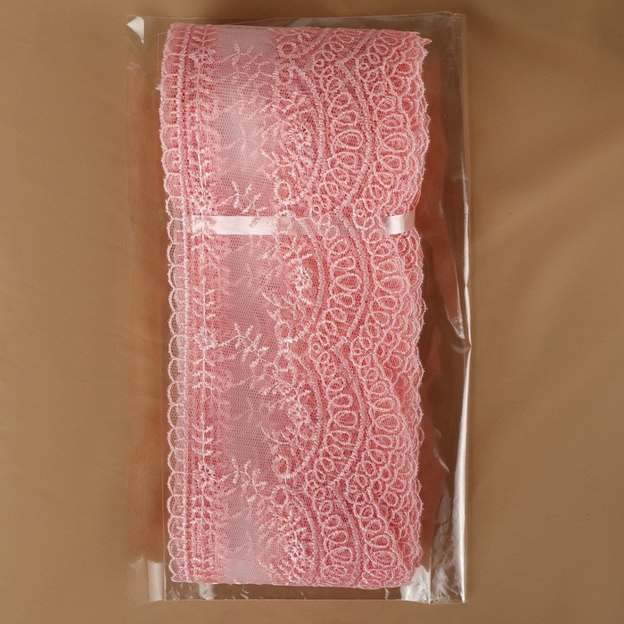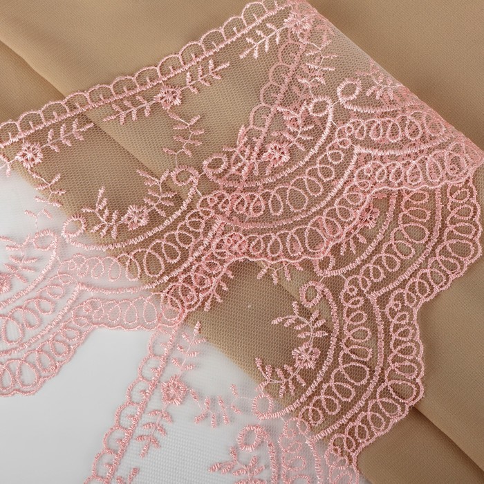 Кружево на сетке, 95 мм, 11±1 м, нежно-розовое — Характеристики