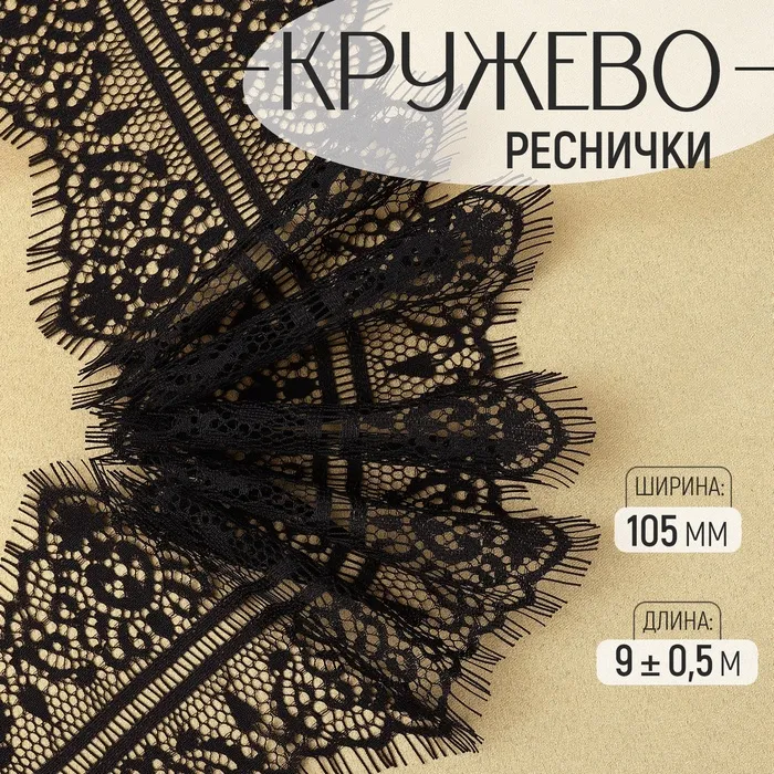 Кружево реснички, 105 мм, 9±0.5 м, в бобине 3 шт. по 3 м, чёрное — Характеристики