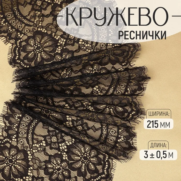 Кружево реснички, 215 мм, 3±0.5 м, чёрное — Характеристики