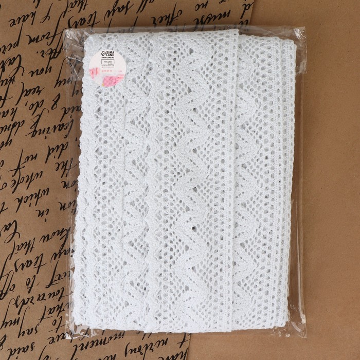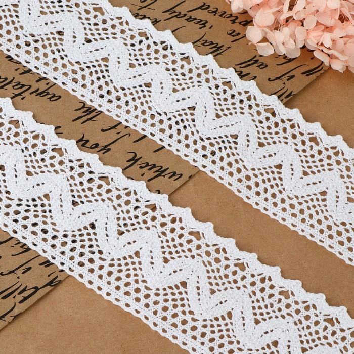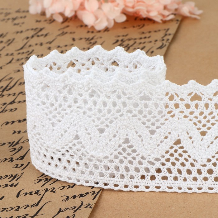 Кружево вязаное, 65 мм × 10 ± 1 м, цвет белый — Характеристики