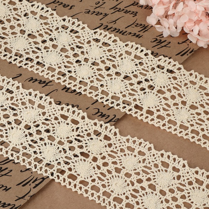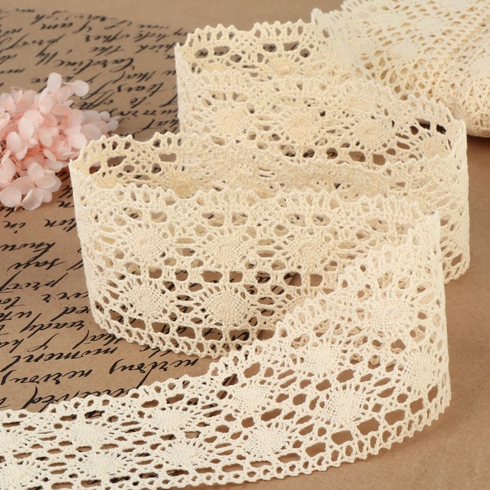 Кружево вязаное, 70 мм, 15±1 м, бежевое — Характеристики