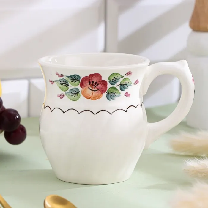 Перед вами не просто кружка, а маленькое произведение искусства, созданное руками мастера Л.В. Алдошиной. Объём в 260 мл идеально подходит для любимых напитков — будь то утренний кофе или вечерний травяной чай. Фигурная форма и изящная ручная роспись цветочно-растительными узорами превращают каждое использование в эстетическое удовольствие.