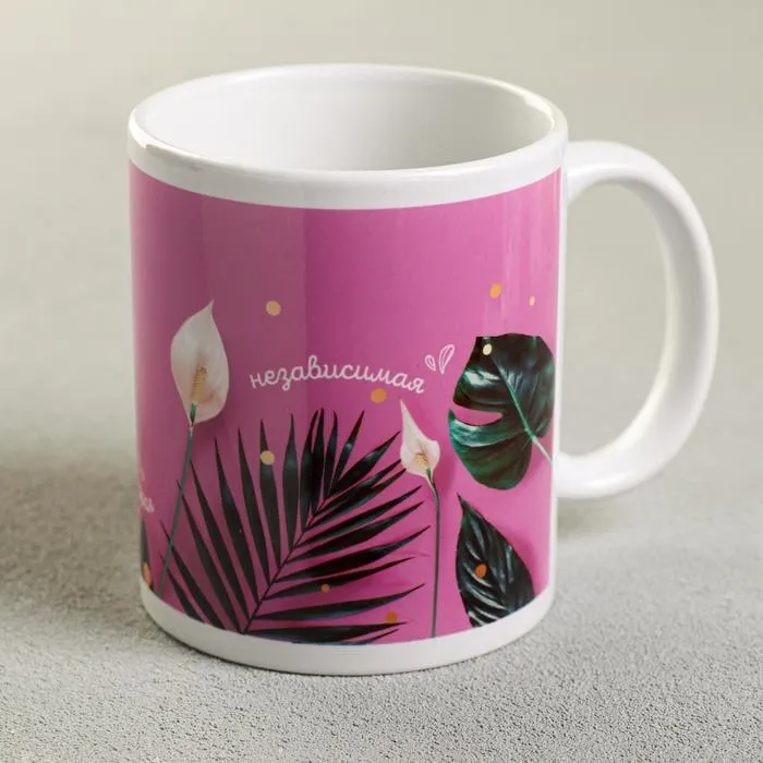 Кружка изготовлена из керамики. Рисунок нанесён методом сублимации, при котором краска проникает в верхний слой изделия, поэтому изображение получается стойким.