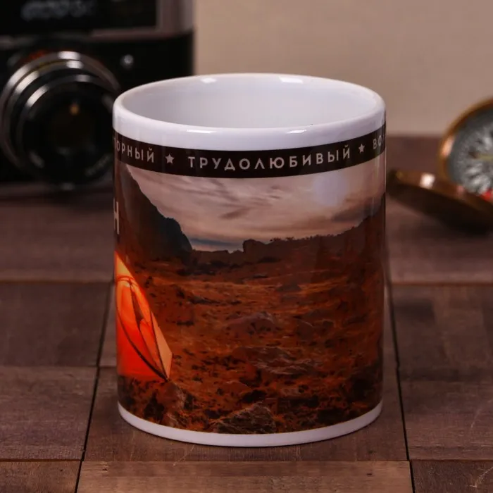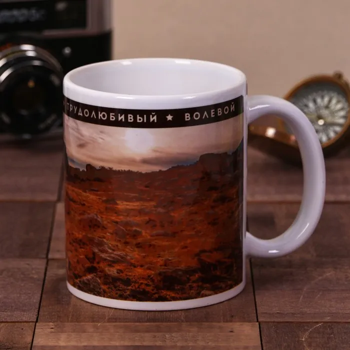 Кружка изготовлена из керамики. Рисунок нанесён методом сублимации, при котором краска проникает в верхний слой изделия, поэтому изображение получается стойким.