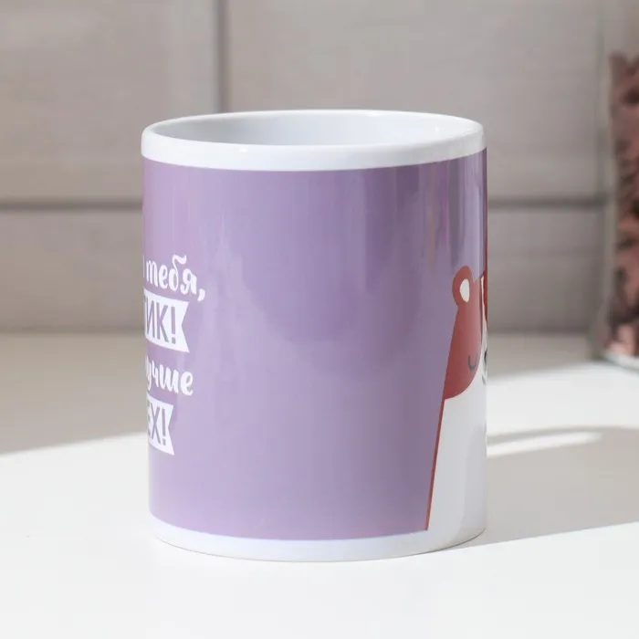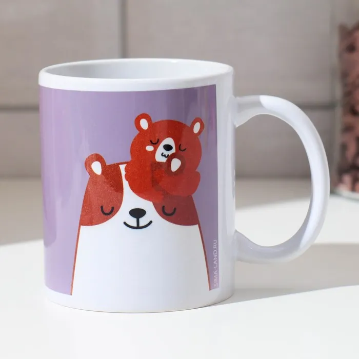 Кружка изготовлена из керамики. Рисунок нанесён методом сублимации, при котором краска проникает в верхний слой изделия, поэтому изображение получается стойким.
