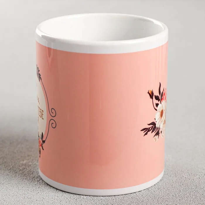 Кружка изготовлена из керамики. Рисунок нанесён методом сублимации, при котором краска проникает в верхний слой изделия, поэтому изображение получается стойким.