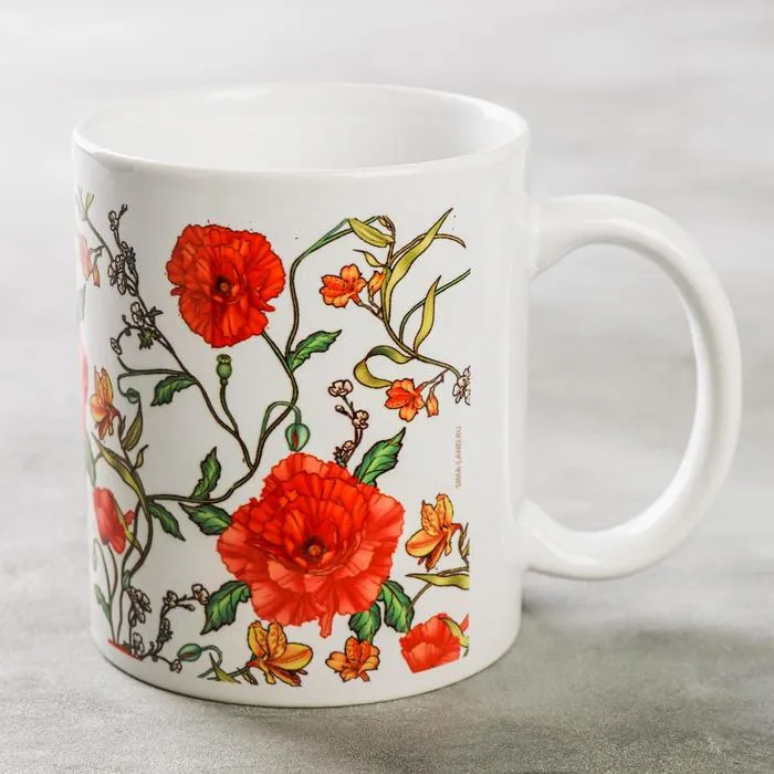 Кружка изготовлена из керамики. Рисунок нанесён методом сублимации, при котором краска проникает в верхний слой изделия, поэтому изображение получается стойким.