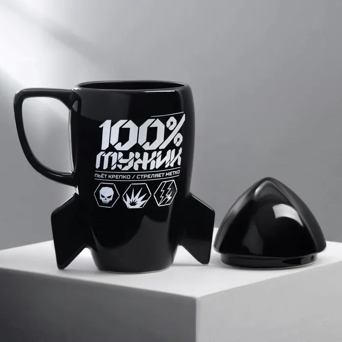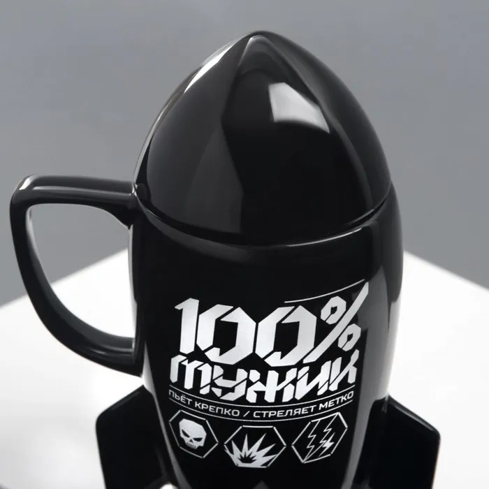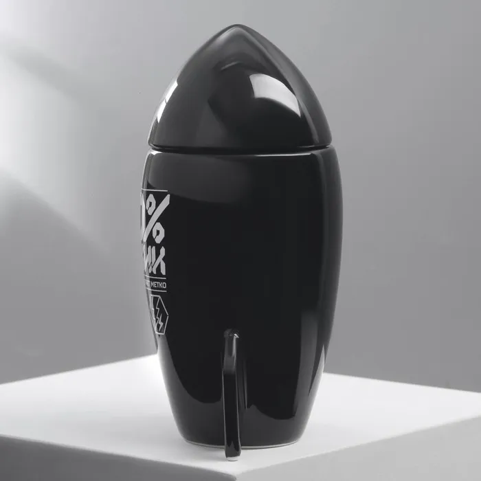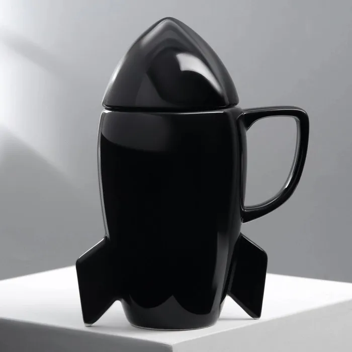 Чёрная керамическая кружка с крышкой в форме ракеты — идеальный выбор для любителей космической тематики и стильного дизайна. Объём этой кружки составляет 300 мл, она станет ярким акцентом на вашей кухне или в офисе.