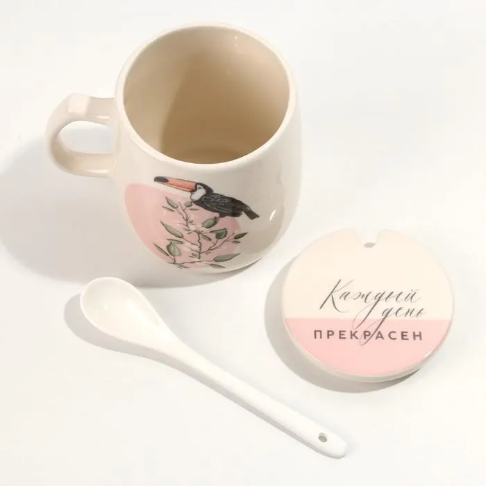 Кружка чайная керамическая с крышкой и ложкой «Каждый день прекрасен», 450 мл — Характеристики