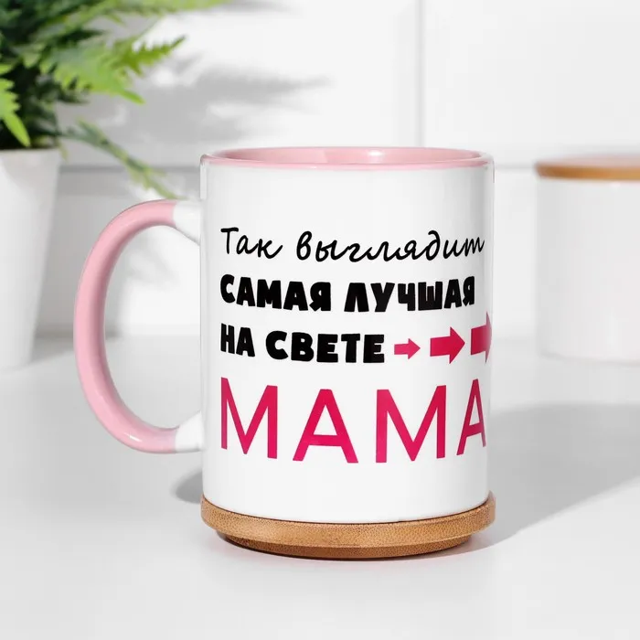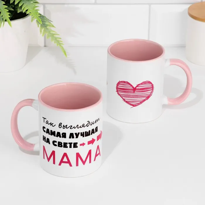 Кружка чайная керамическая "Самая лучшая на свете мама" объем 320 мл,дно розового цвета — Характеристики