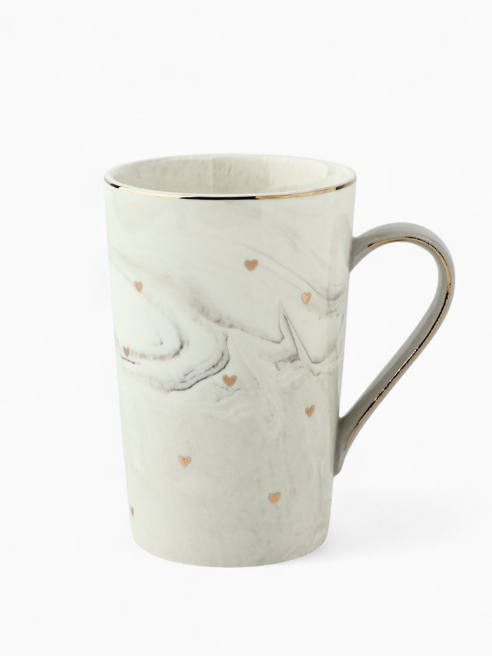 Элегантная керамическая кружка объемом 350 мл с золотой деколью. Качественная керамика приятно держится в руках и долго сохраняет тепло напитков.