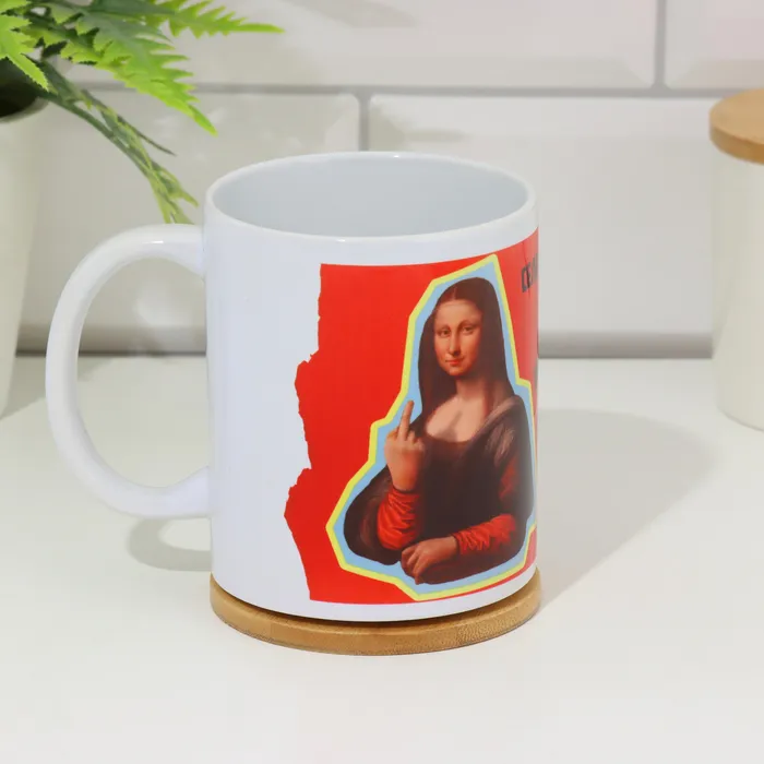 Кружка изготовлена из керамики. Рисунок нанесён методом сублимации, при котором краска проникает в верхний слой изделия, поэтому изображение получается стойким.