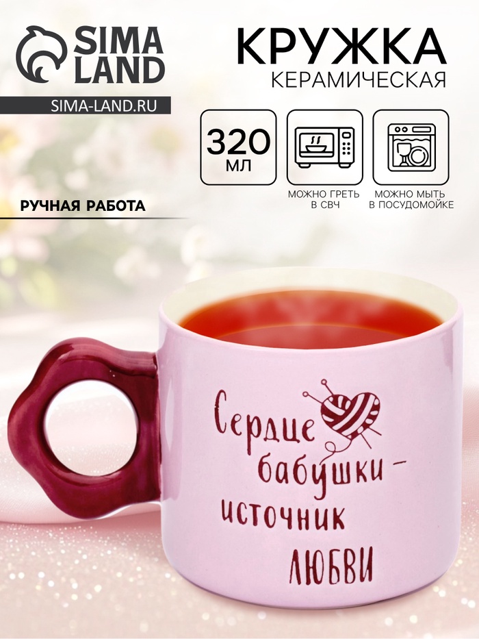 - Удобная ручка: кружка оснащена удобной ручкой, которая не нагревается и не скользит в руке.
