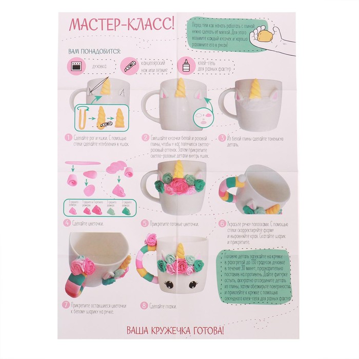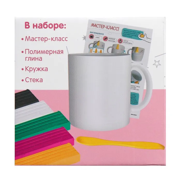 С этим набором вы сможете создать оригинальную кружку с объёмным изображением из полимерной глины.