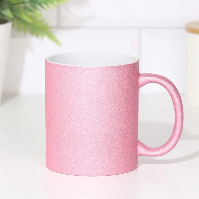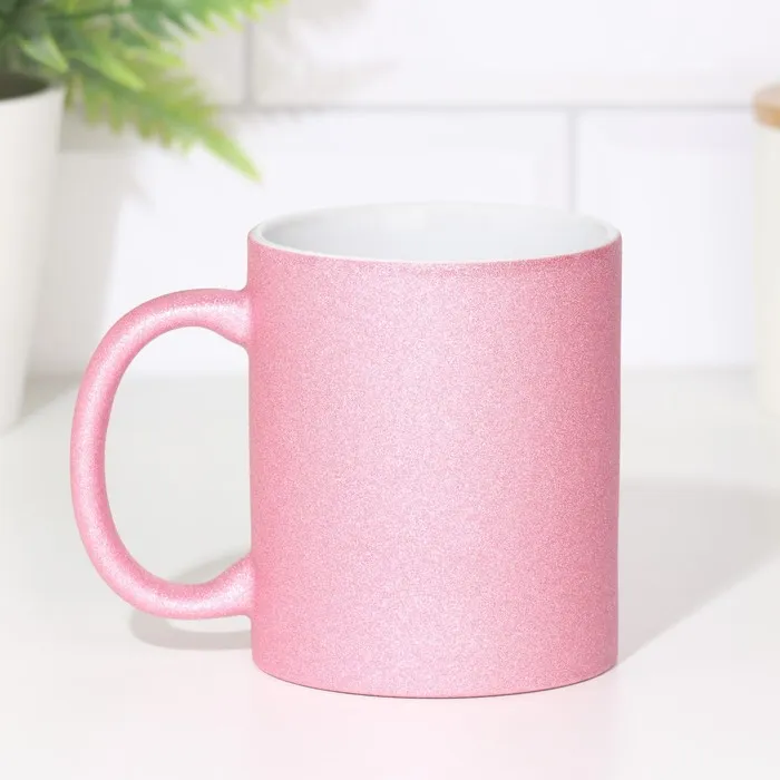 Кружка для сублимации, розовый глиттер, логотип, 320 мл