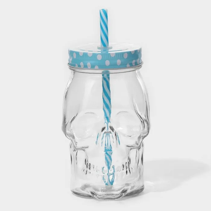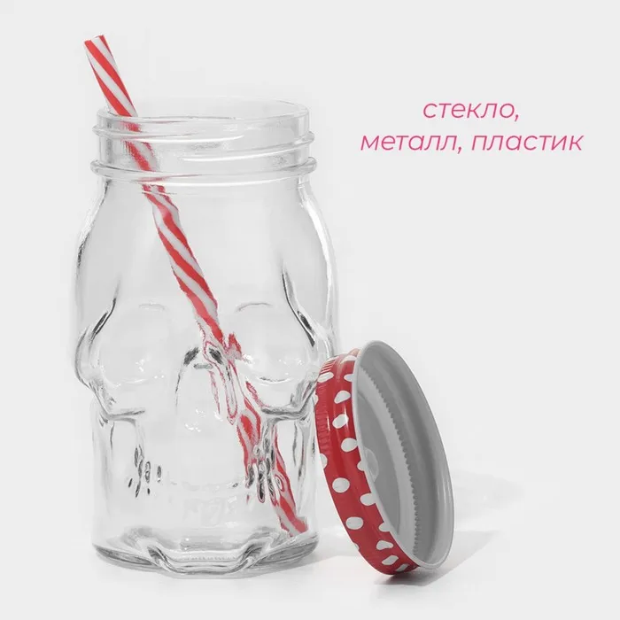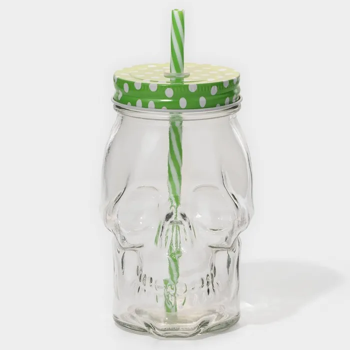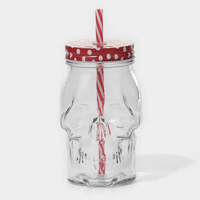 Кружка Доляна «Череп. Хэллоуин», 400 мл, 9×14.5 см, с крышкой и трубочкой, стекло, МИКС — Характеристики