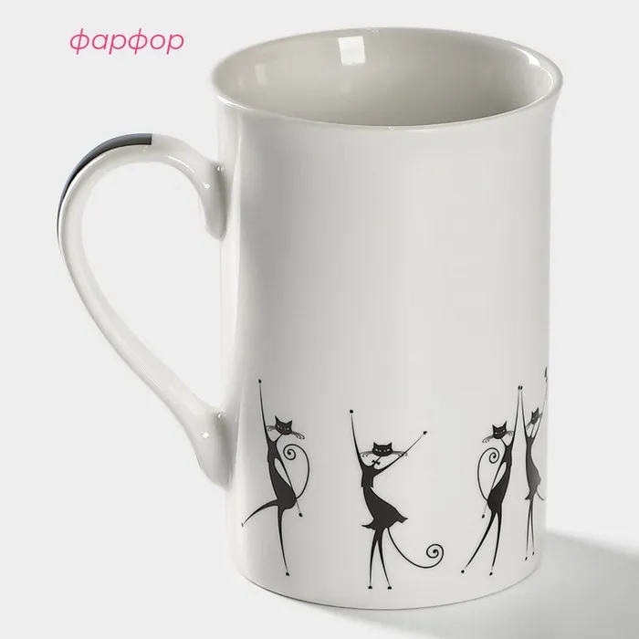 Кружка Доляна «Чёрные кошечки», 300 мл, фарфор, белая — Характеристики