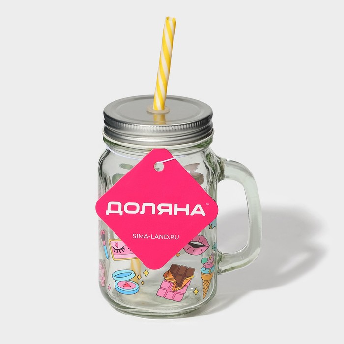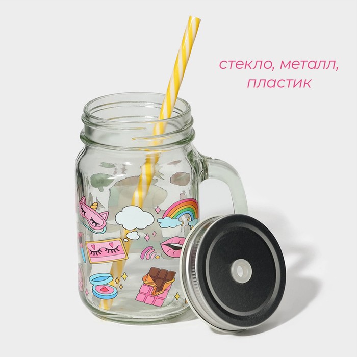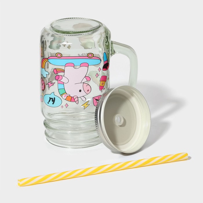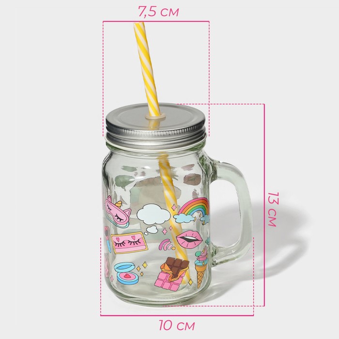 Кружка Доляна «Единорог», 450 мл, 10×7.5×13 см, стекло, с крышкой и трубочкой — Характеристики