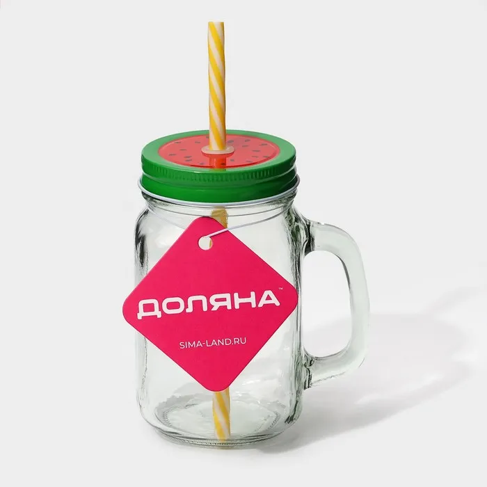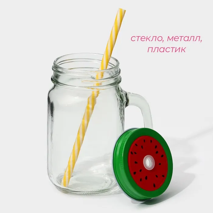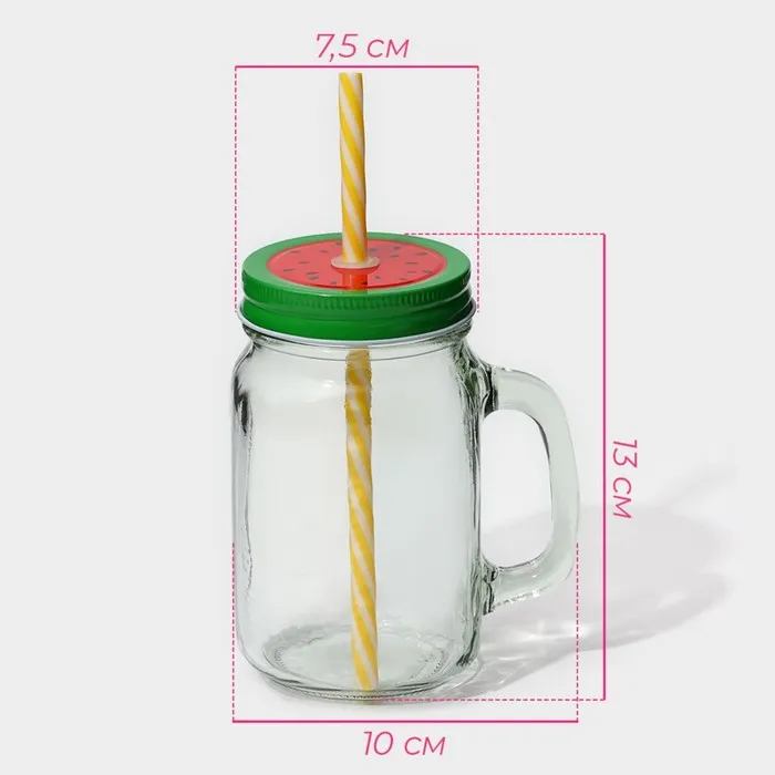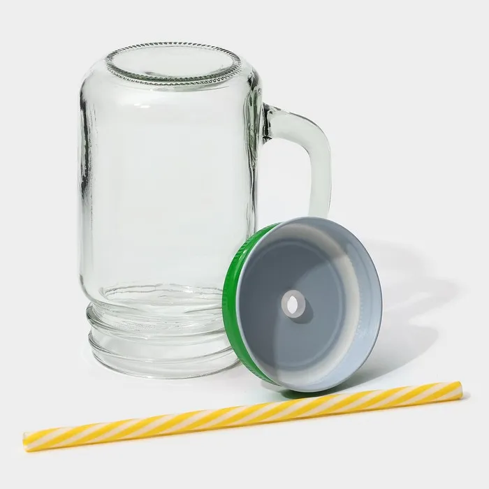 Кружка Доляна «Гладь», 450 мл, 10×7.5×13 см, с крышкой и трубочкой, стекло — Характеристики