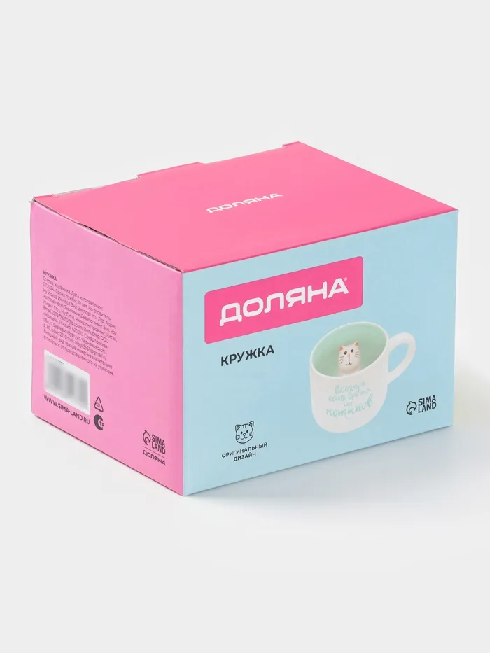 Кружка Доляна «Котик», 360 мл, керамика, белая, бирюзовая — Характеристики