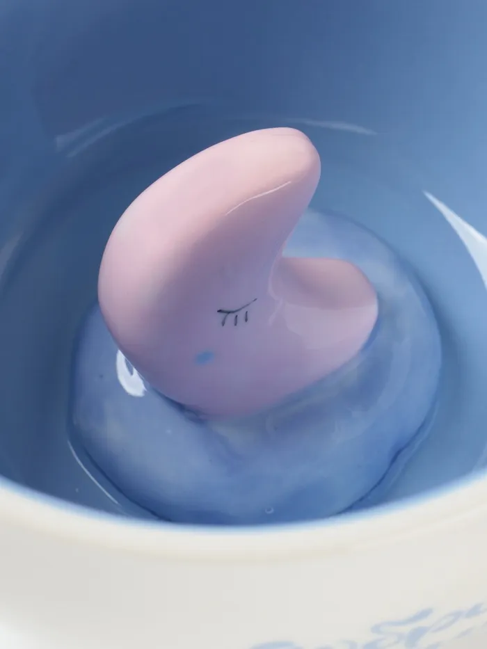 - Нежный дизайн: Бело-голубое сочетание, фигурка луны и трогательная надпись.