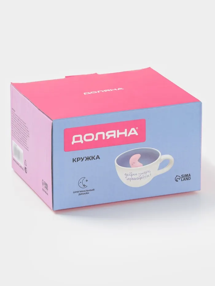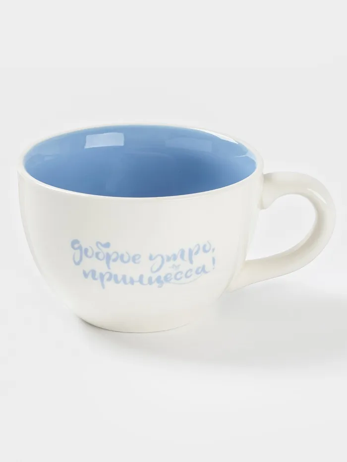 Волшебная керамическая кружка большого объема (475 мл) в нежных бело-голубых тонах. Украшена милой фигуркой луны внутри и надписью «Доброе утро, принцесса!». Отличный способ начать день с улыбки и почувствовать себя особенной. Можно использовать в микроволновой печи и посудомоечной машине.