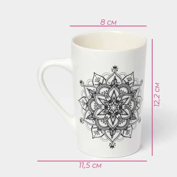 Кружка Доляна «Мандала», 380 мл, фарфор, чёрный узор — Характеристики