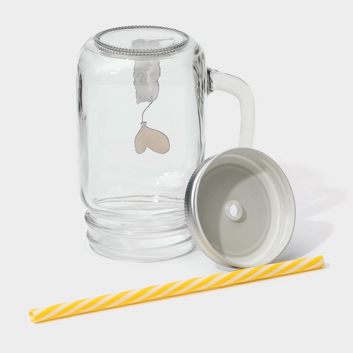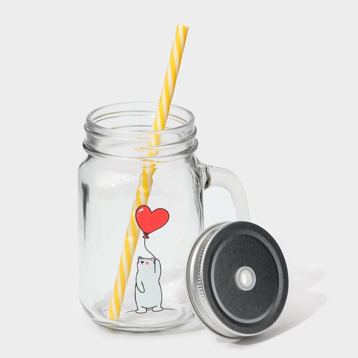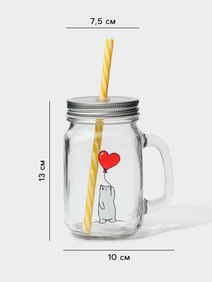 Кружка Доляна «Медведь», 450 мл, 10×7.5×13 см, с крышкой и трубочкой, стекло — Характеристики