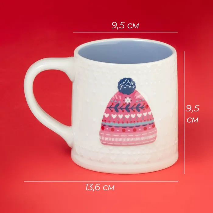 Кружка Доляна «Новогодняя шапочка», 480 мл, 13.6×9.5×9.5 см, фарфор, белая — Характеристики