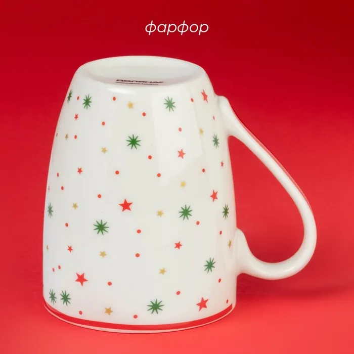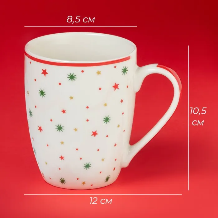 Кружка Доляна «Новогодние каникулы», 370 мл, 12×8,5×10,5 см, фарфор, белая — Характеристики