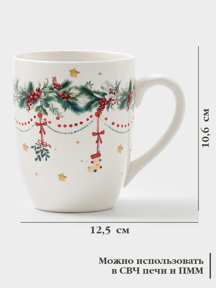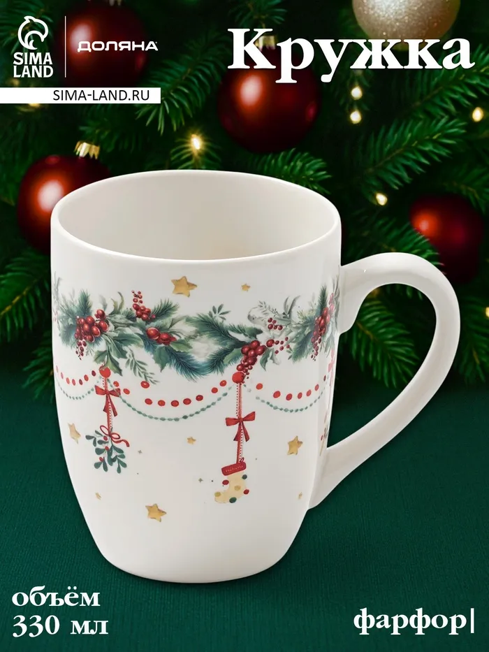 Кружка Доляна «Новогодние подарки», 330 мл, фарфор, белая — Характеристики