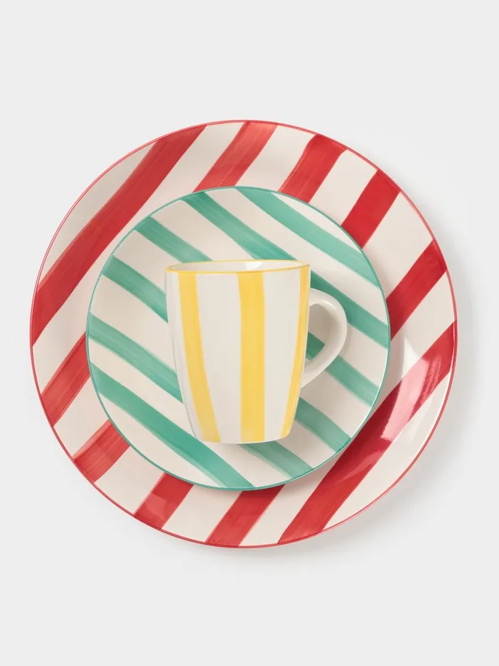 Начните утро с бодрящего кофе в этой красной полосатой керамической кружке. Ее удобный объем 360 мл идеально подходит для любимых горячих напитков.