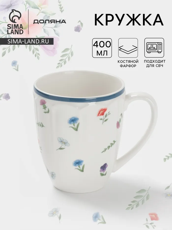 Кружка Доляна «Романс» 400 мл, 12.3×9×10.5 см, фарфор, белая — Характеристики