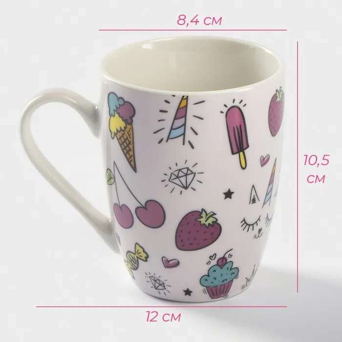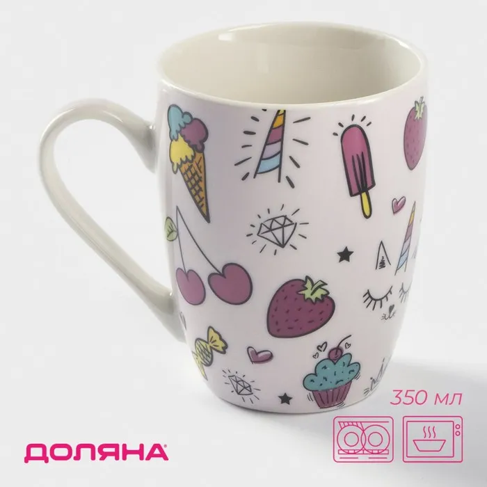 Кружка Доляна «Сладости», 350 мл, фарфор, розовая — Характеристики