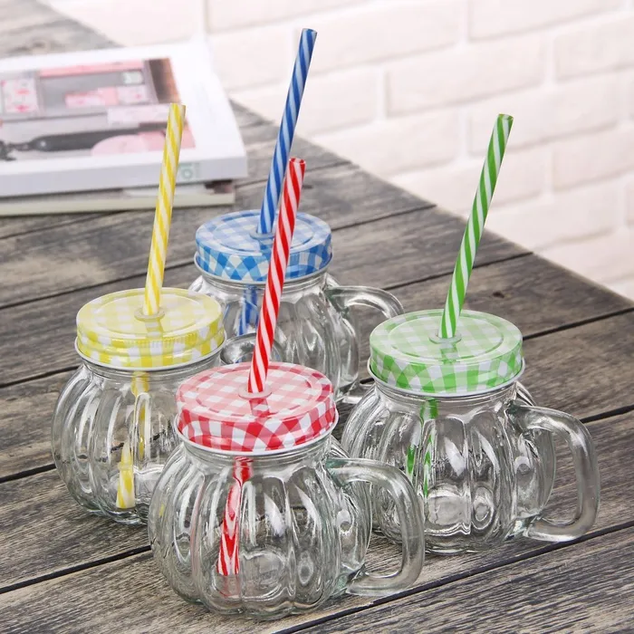 Кружка Доляна «Тыковка», 400 мл, 12.5×10 см, стекло, с крышкой и трубочкой, МИКС — Характеристики