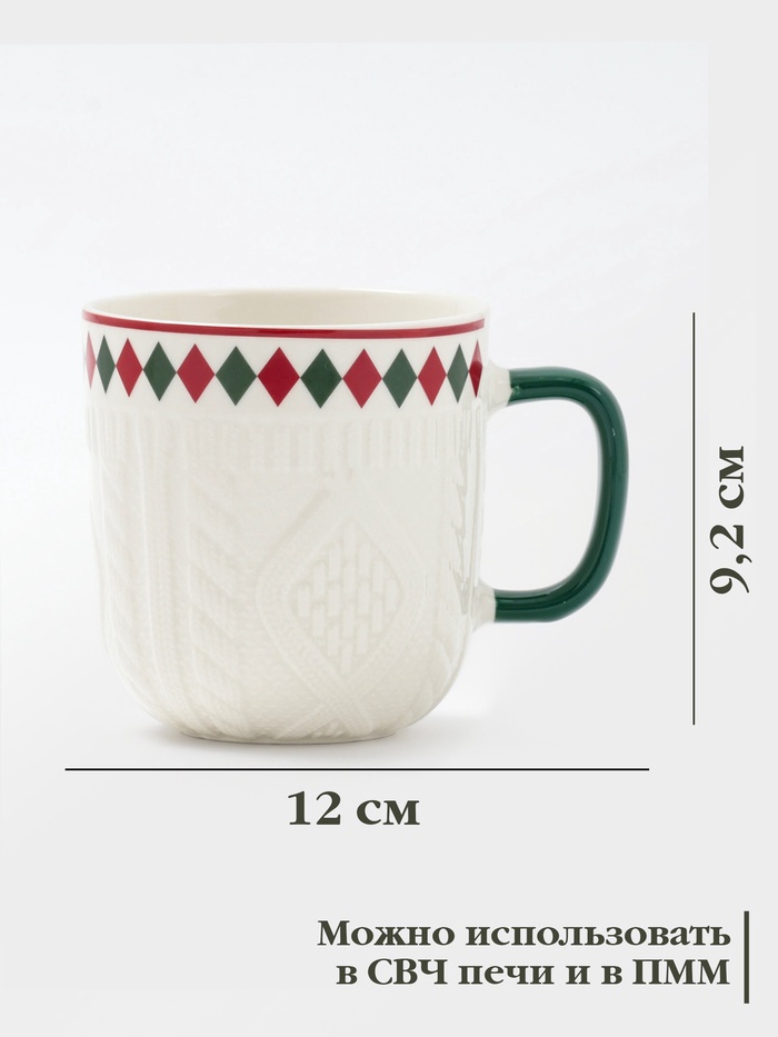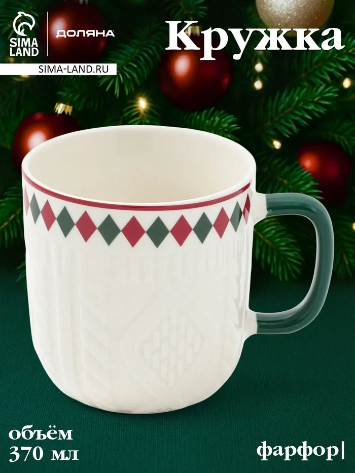 Кружка Доляна «Уютный новый год. Ромб», 370 мл, фарфор, белая — Характеристики