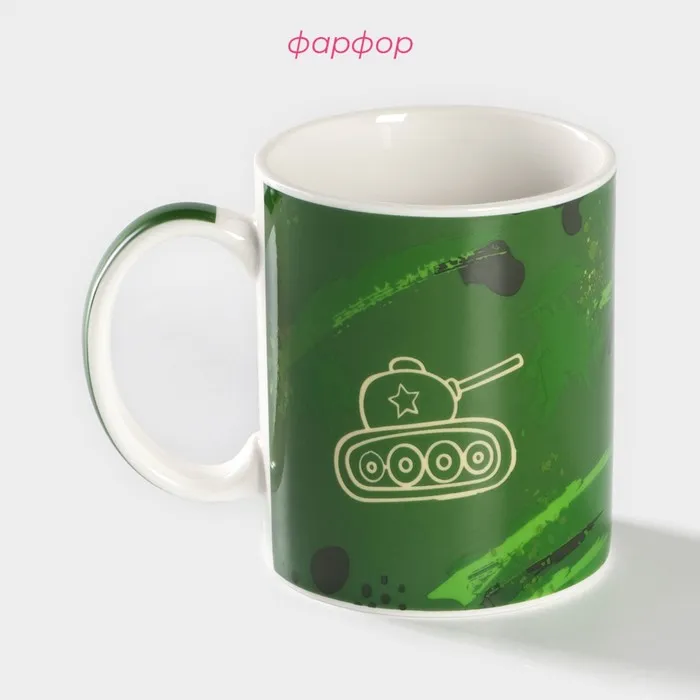 Кружка Доляна «Защитнику», 340 мл, фарфор, цвет зелёный — Характеристики