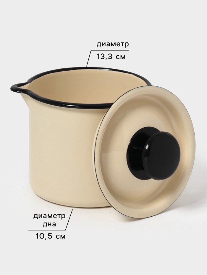 Кружка эмалированная, 1 л, с крышкой и носиком, без декора, цвет слоновой кости — Характеристики