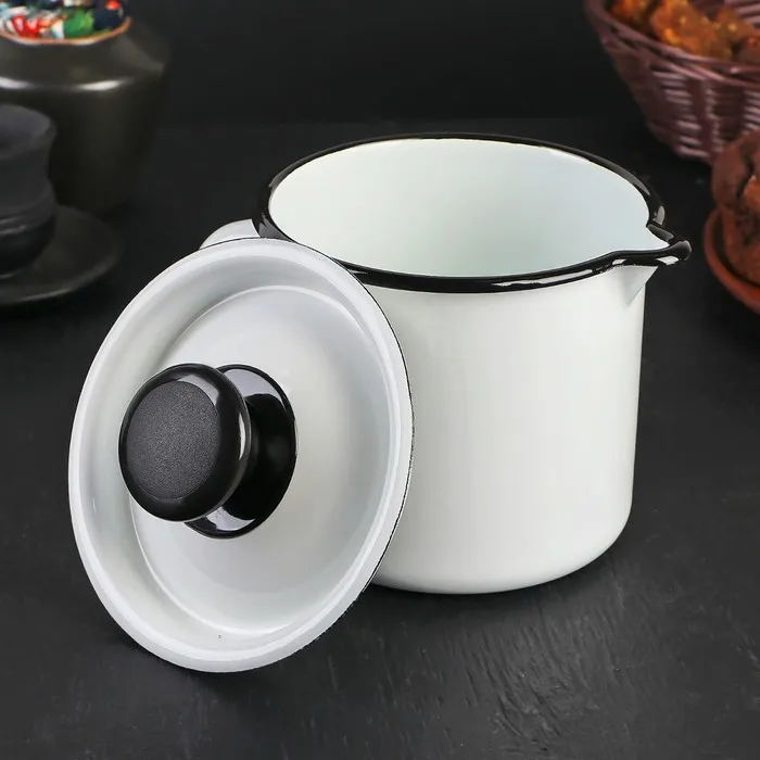 Кружка эмалированная с носиком, 1 л, с крышкой, цвет белый — Характеристики