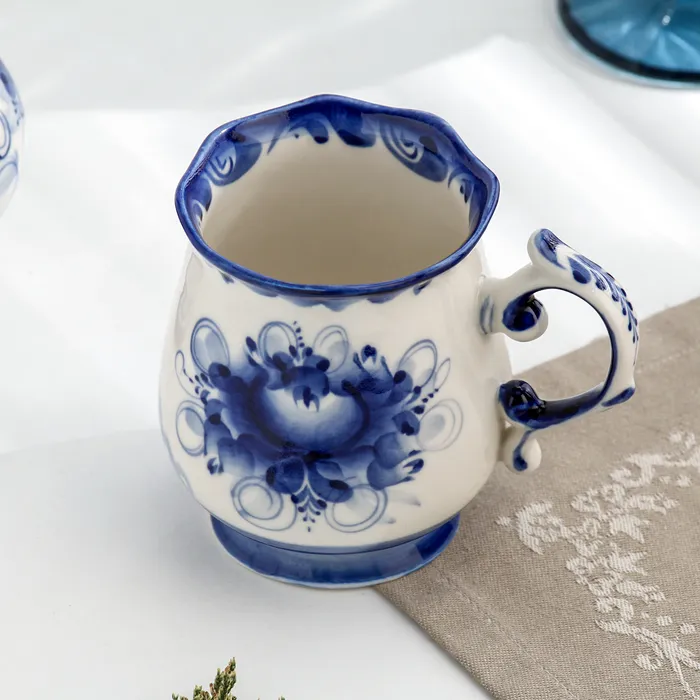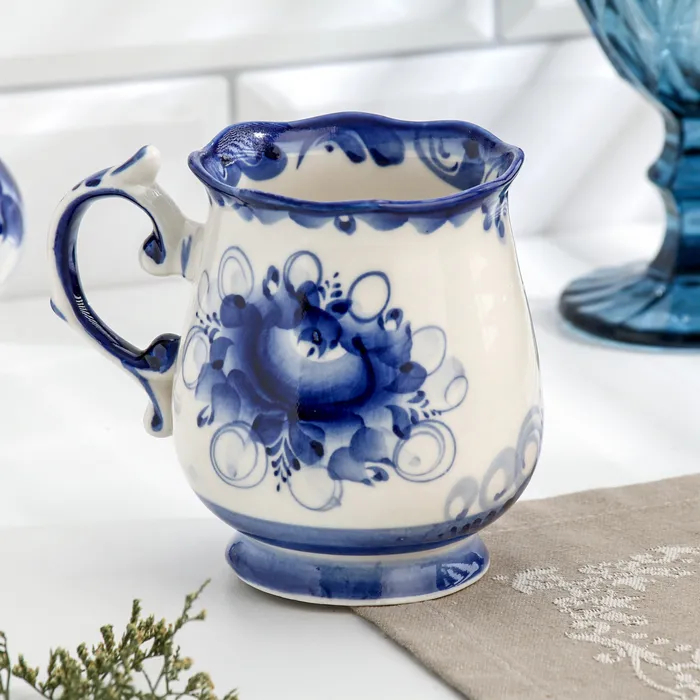 Кружка фарфор гжель «Утро», бело-синий, 11×12 см — Характеристики