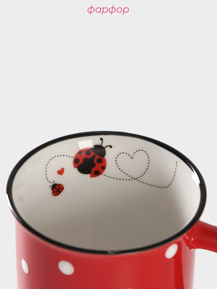 Кружка фарфоровая Доляна «Божья коровка», 370 мл, цвет красный — Характеристики