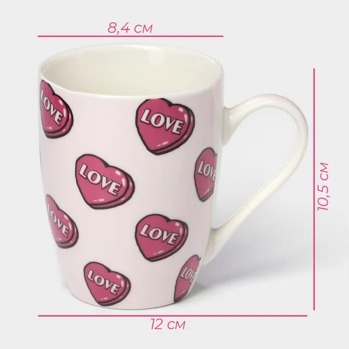 Кружка фарфоровая Доляна «Полёт сердец», 350 мл, цвет розовый — Характеристики