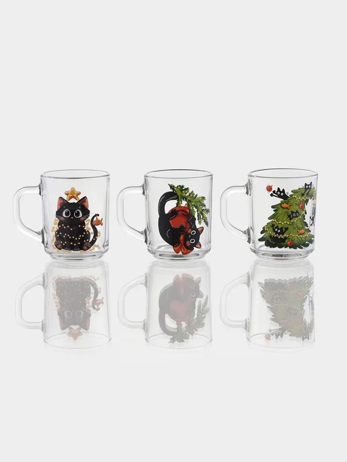 - Прозрачное стекло с рисунком: материал позволяет видеть уровень напитка и наслаждаться визуальным контрастом — милый рисунок озорных котят на фоне чистого стекла создаёт ощущение лёгкости и тепла.