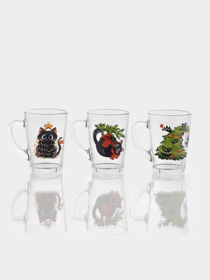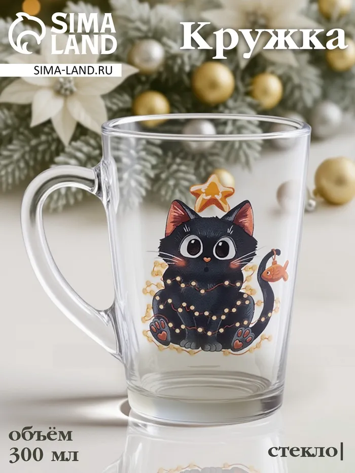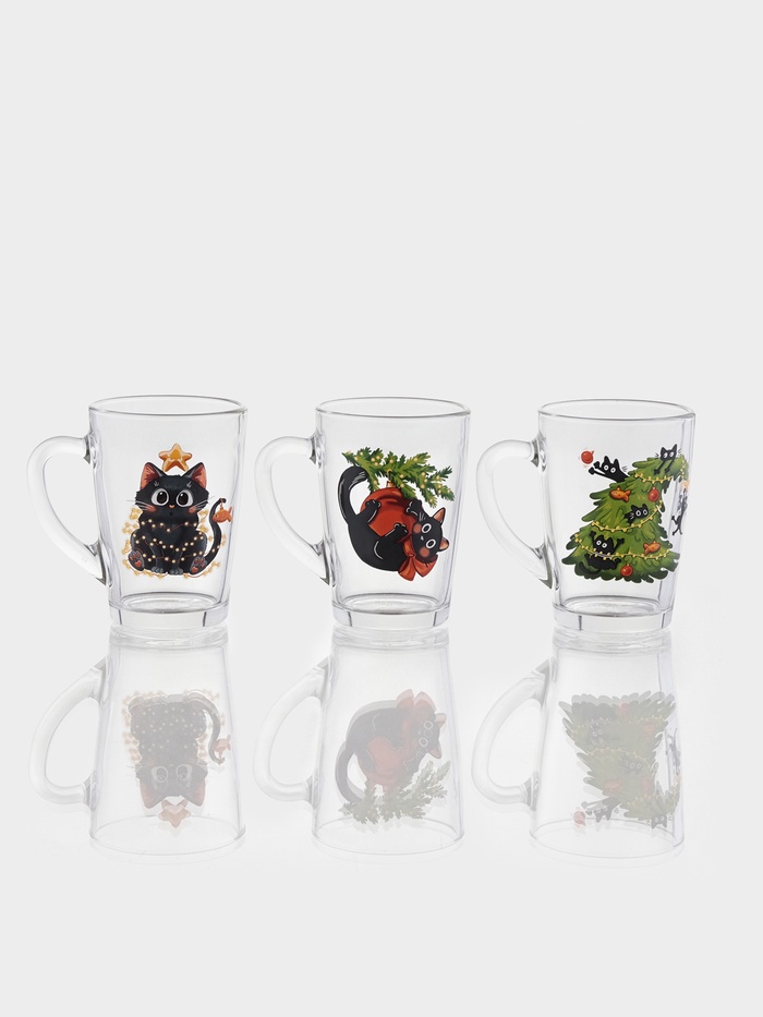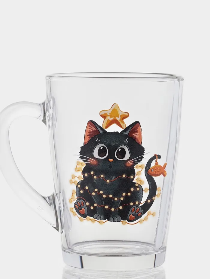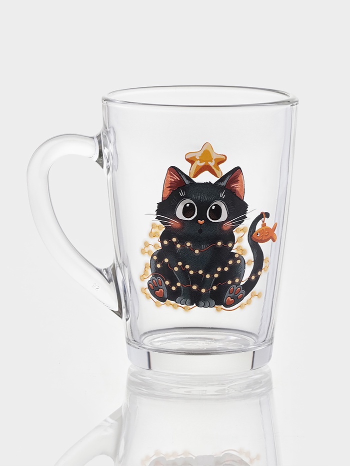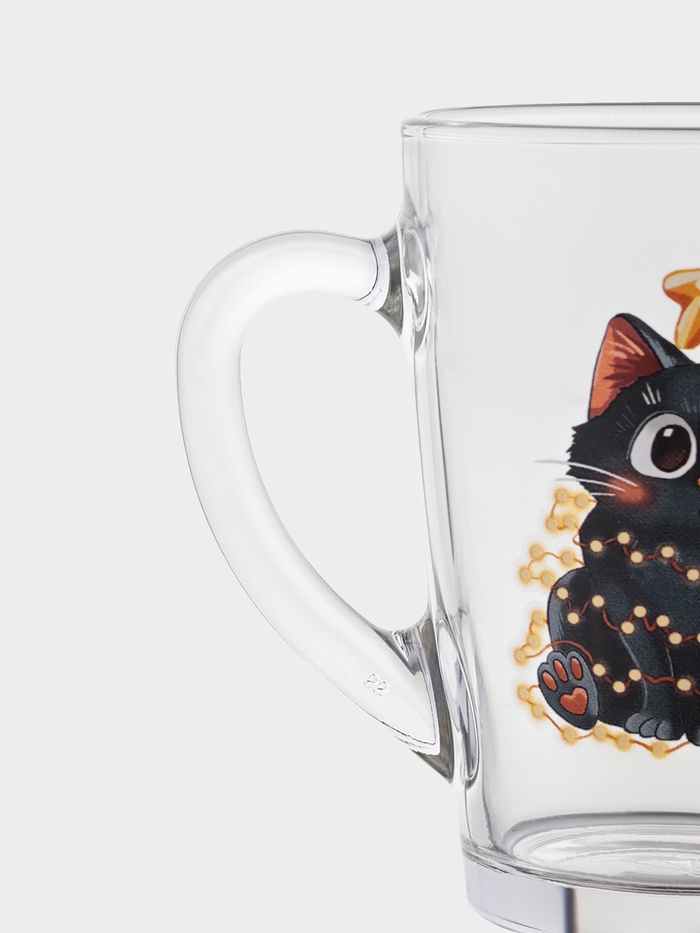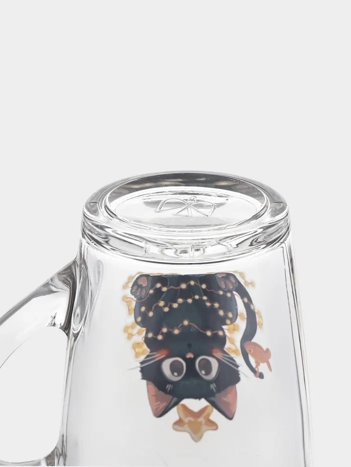 - Прозрачное стекло с рисунком: материал позволяет видеть уровень напитка и наслаждаться визуальным контрастом — милый рисунок озорных котят на фоне чистого стекла создаёт ощущение лёгкости и тепла.