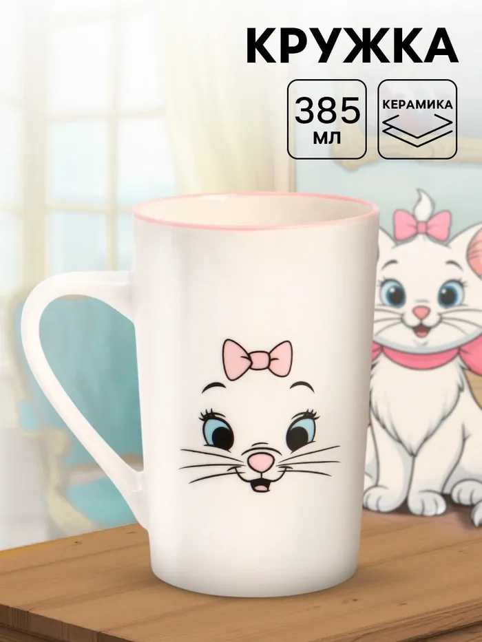 Керамическая кружка 385 мл, белая, с милой мордочкой кошечки Мари — очаровательный аксессуар для поклонников «Котов-аристократов». Изготовлена из качественной керамики, удобна в использовании. Подходит для чая, какао и кофе. Идеальна для дома или в подарок. Наполните каждый день ноткой грации, тепла и доброго настроения от любимой героини!