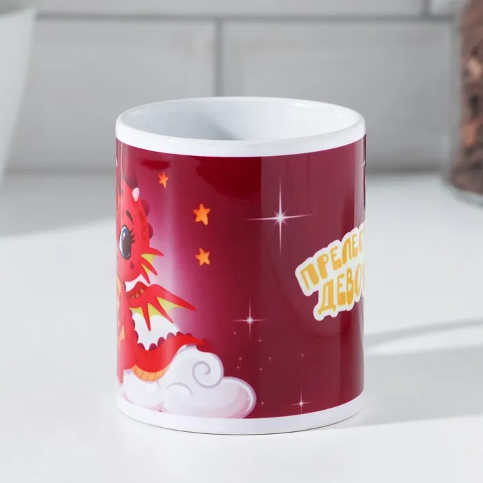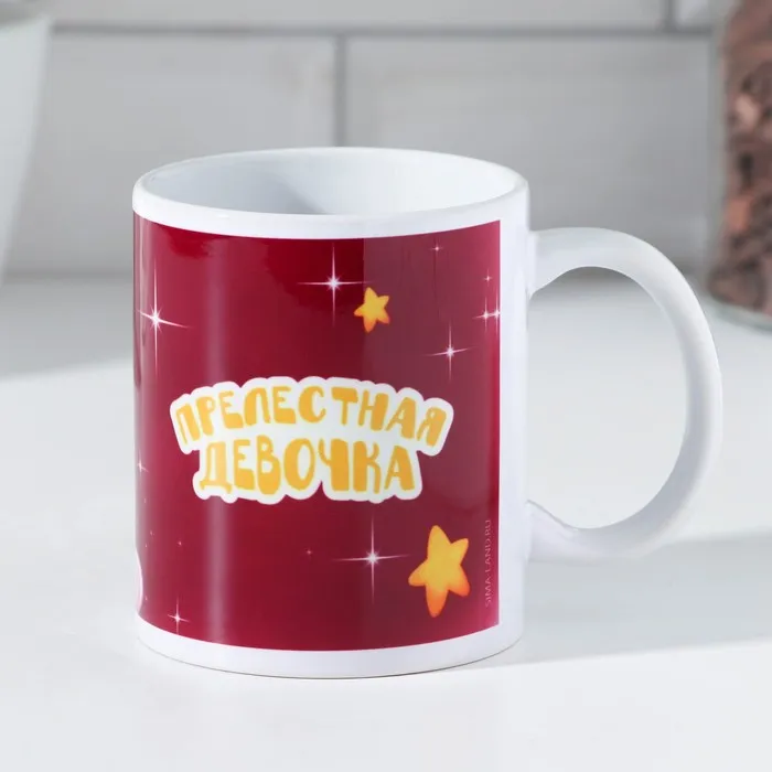 Кружка изготовлена из керамики. Рисунок нанесён методом сублимации, при котором краска проникает в верхний слой изделия, поэтому изображение получается стойким.