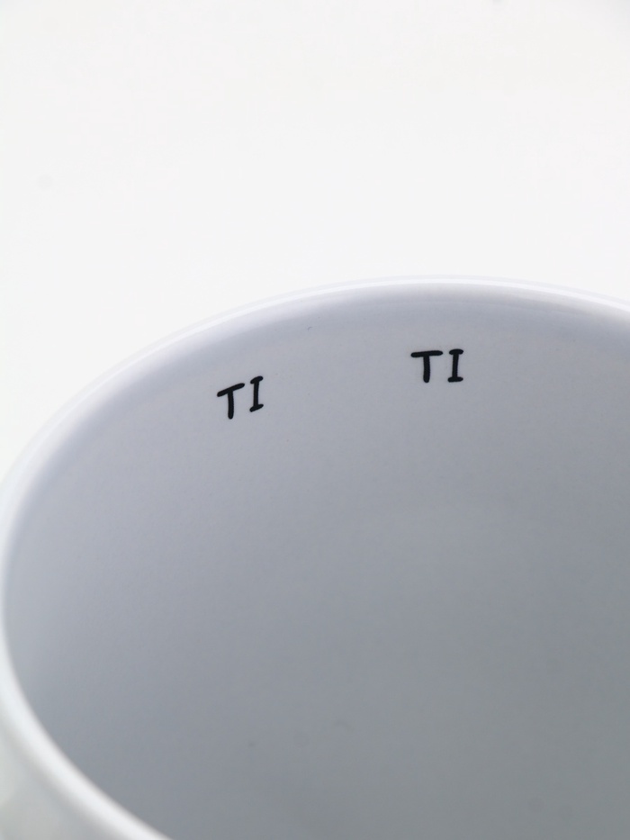 Эта кружка похожа на ту шутку, которую понимаешь не сразу — и от этого она становится смешнее. Надпись ”TI TI” не кричит. Она *ждёт*. Как умная цитата на полях книги — заметна только тому, кто дочитал до конца. А до этого — только форма, намёк, и чуть приподнятая бровь.